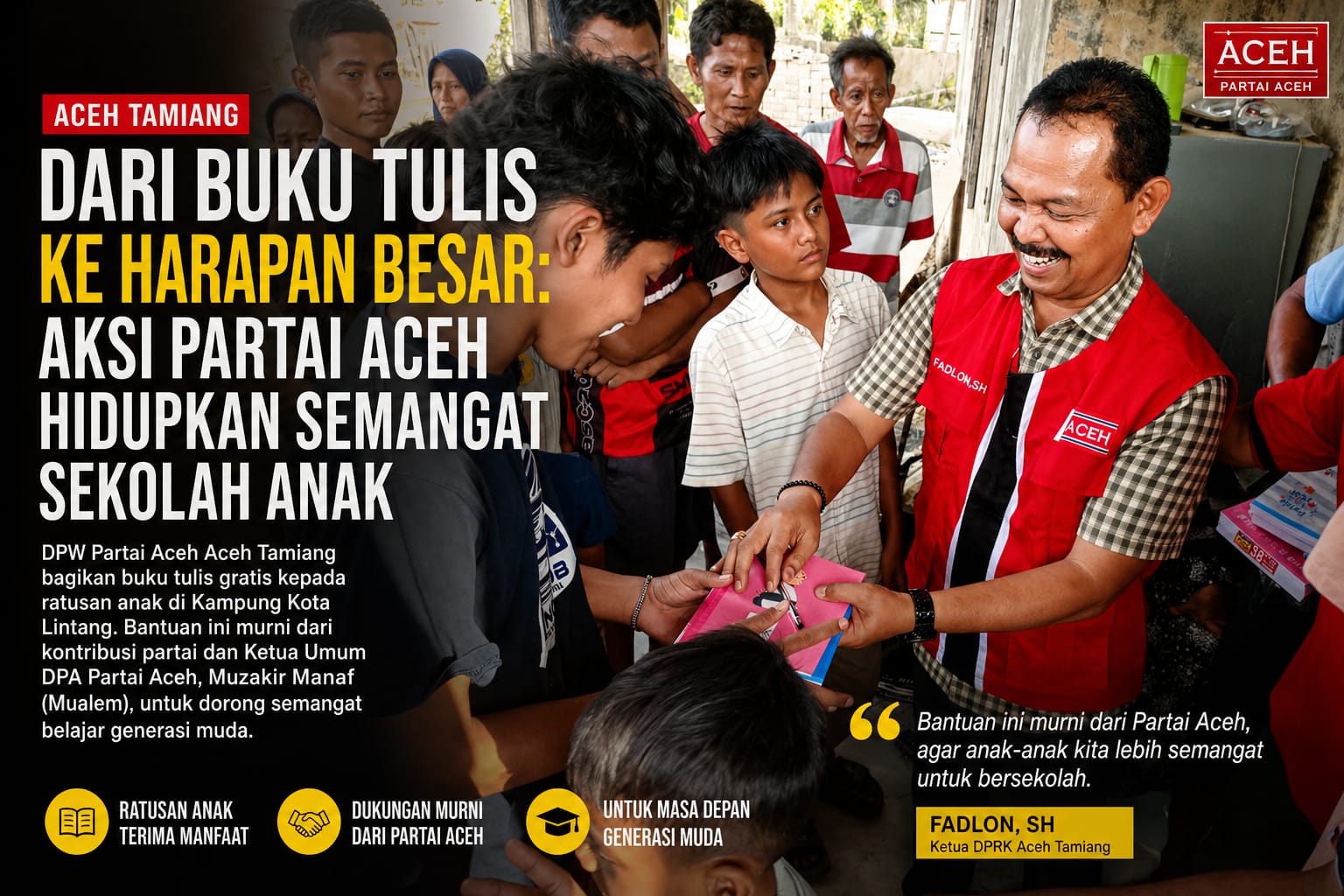 Program ini merupakan instruksi langsung dari Dewan Pimpinan Pusat (DPP) Partai Aceh sebagai bentuk komitmen mendukung pendidikan hingga ke tingkat akar rumput. Tak sekadar seremonial, kegiatan ini juga memperlihatkan kedekatan antara pemimpin dan masyarakat.