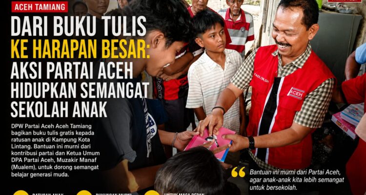 Dari Buku Tulis ke Harapan Besar: Aksi Partai Aceh Hidupkan Semangat Sekolah Anak ADVENTORIAL, Pendidikan, Politik|April 26, 2026April 27, 2026oleh Tim Redaksi ACEH TAMIANG — Halaman sebuah rumah di Kampung Kota Lintang, Kecamatan Kota