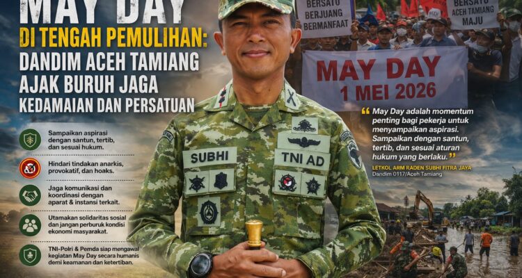 May Day di Tengah Pemulihan: Dandim Aceh Tamiang Ajak Buruh Jaga Kedamaian dan Persatuan Headline, Nasional|April 30, 2026oleh Tim Redaksi ACEH TAMIANG — Menjelang peringatan Hari Buruh Internasional (May Day) yang jatuh